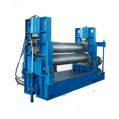 用于常温状态下将板材卷成圆筒形、圆弧形、圆锥形。性能优越,结构紧凑、操作方便。上辊升降、翻倒装置采用液压驱动。主传动由电机通过三角带传递,减速器带动两下辊驱动,卷制柔性好。采用PLC可编程显示器控制,上辊升降采用位移传感器检,测数显表显示。提高产品效率和产品质量,翻倒架采用液压翻倒。